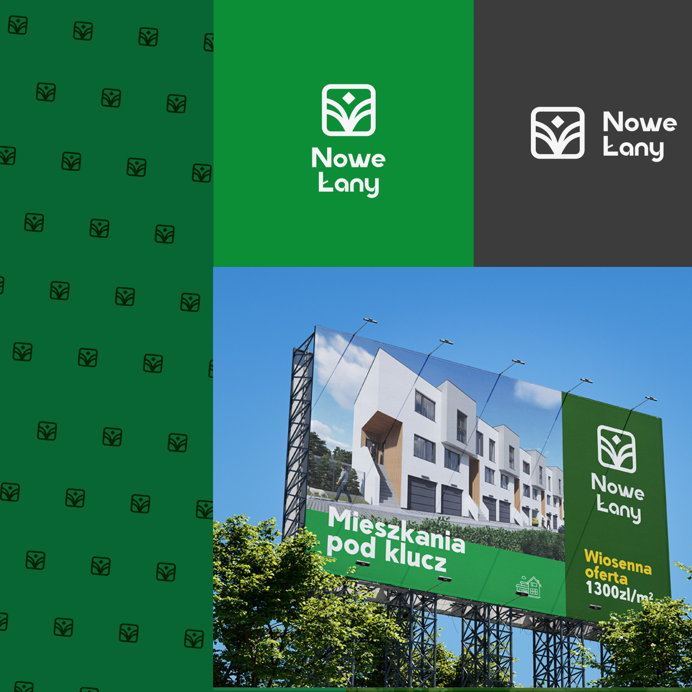 Logoyp nowego osiedla luksusowych domków. Łączy ideę bliskości z naturą i nowoczesności.