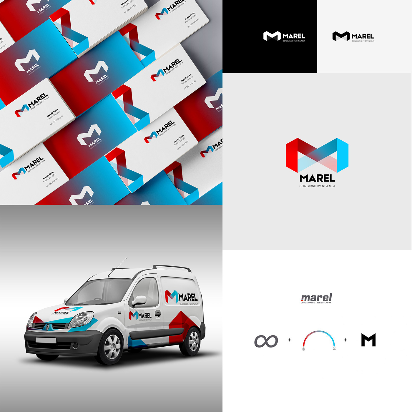Identyfikacja firmy MAREL zajmującej się systemami ogrzewania i wentylacji. Inspirowana elementami urządzeń i skalą: "zimno - ciepło".