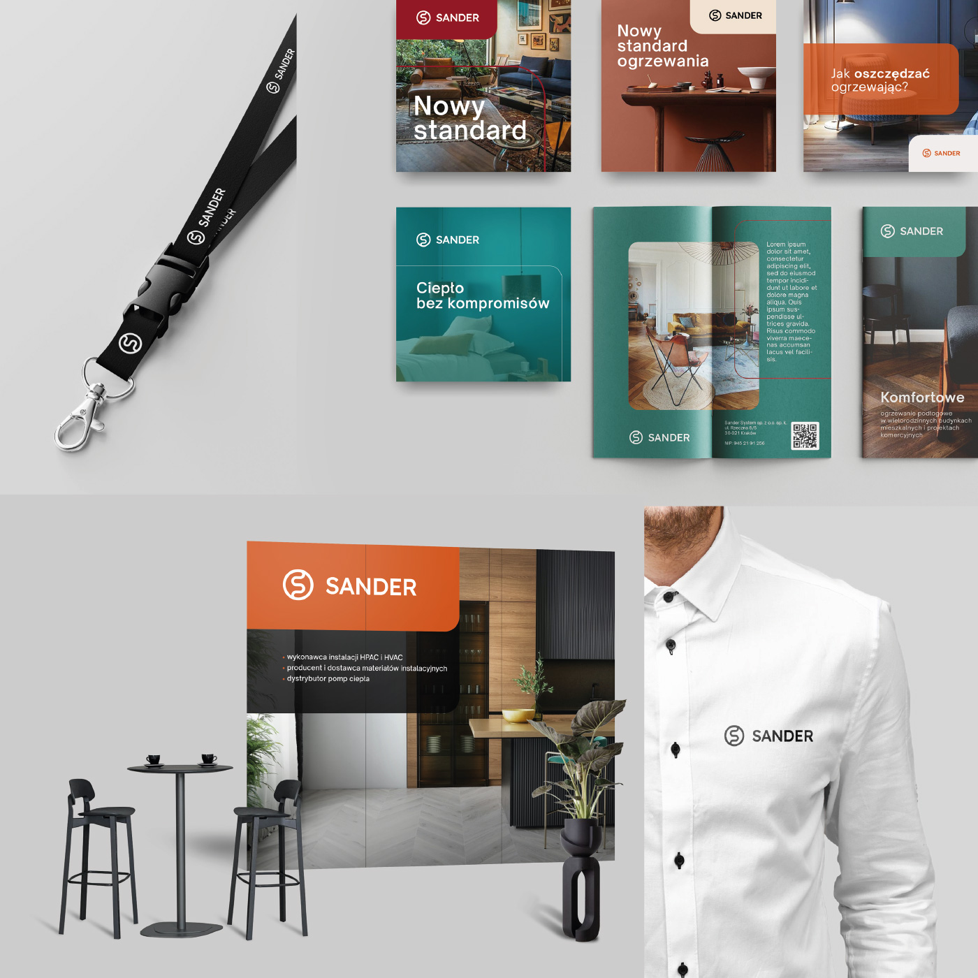 Kompleksowa indentyfikacja wizualna firmy SANDER SYSTEM. Księga znaku, projekty broszur i katalogów.